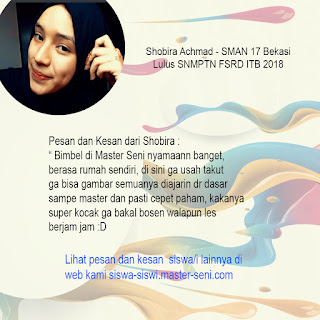 Kabar gembira satu lagi sahabat kami mengucapkan selamat kepada Siswa/i Online kami yang lulus melalui Jalur SNMPTN FSRD ITB 2018 yang namanya ingin dicantumkan di web kami ataupun yang tidak ingin dicantumkan di web kami dan berikut beberapa pesan dan kesan Siswa/i Master Seni yang telah lulus yang telah kami bimbing from zero to hero semuanya dari nol sampai lulus :